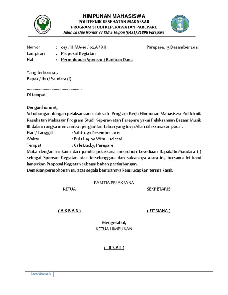 Surat permohonan kerjasama sponsorship arsip. 1 berkas proposal kepada yth. Contoh surat permohonan dinas, contoh surat permohonan bantuan, contoh surat permohonan izin, contoh surat permohonan dana ke perusahaan. Pada sebuah acara atau event yang relatif besar yang diadakan oleh organisasi sekolah atau kampus sering kita jumpai sponsor. 1 (satu) berkas proposal :